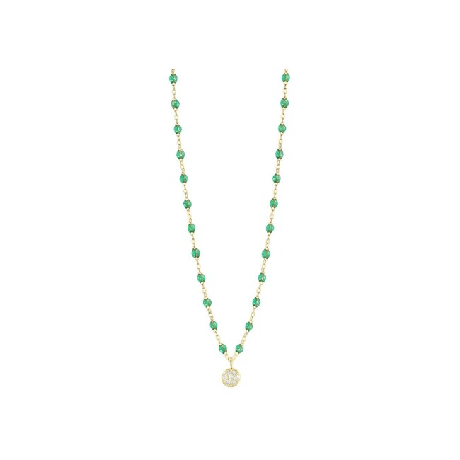 Collier Gigi Clozeau Gigi Suprême en or rose, résine vert émeraude et diamants, taille 45cm