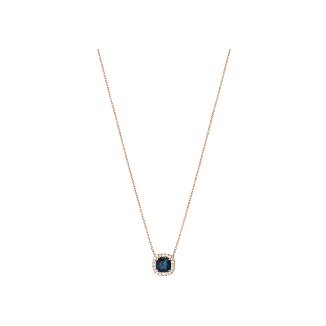 Collier San Marco en or rose, topaze Blue London et entourage diamants