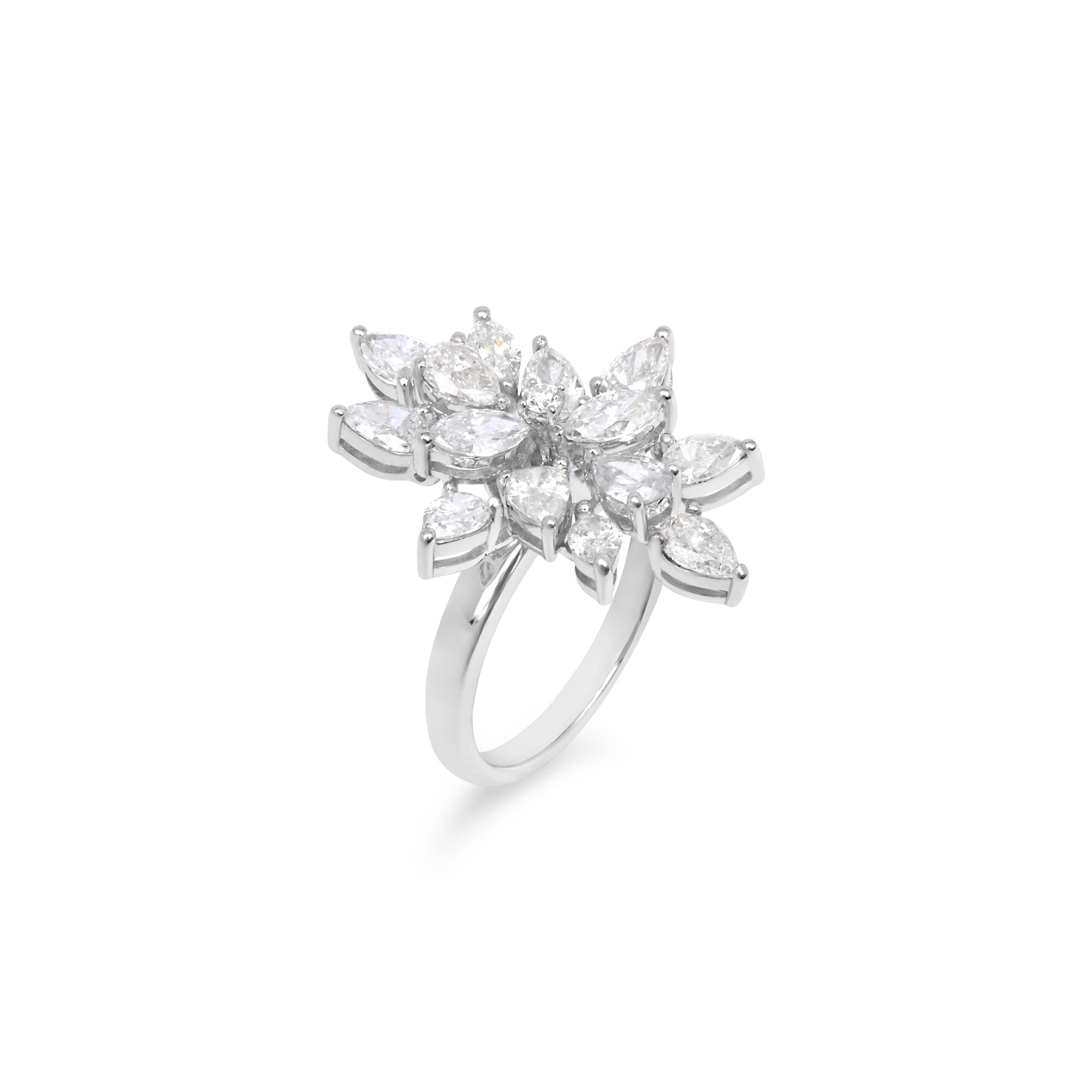 Bague Feu d'Artifice en or blanc et diamants taille poire.