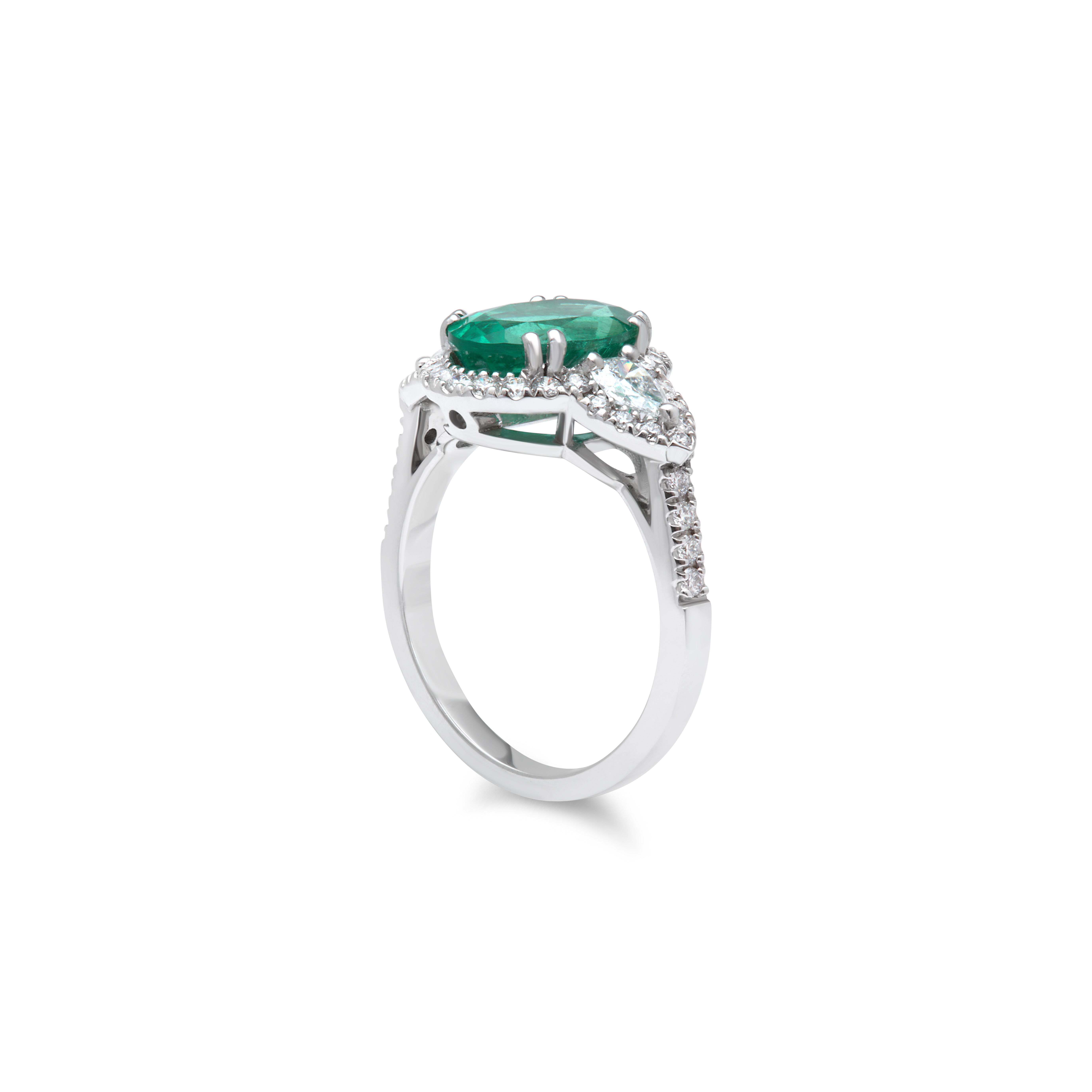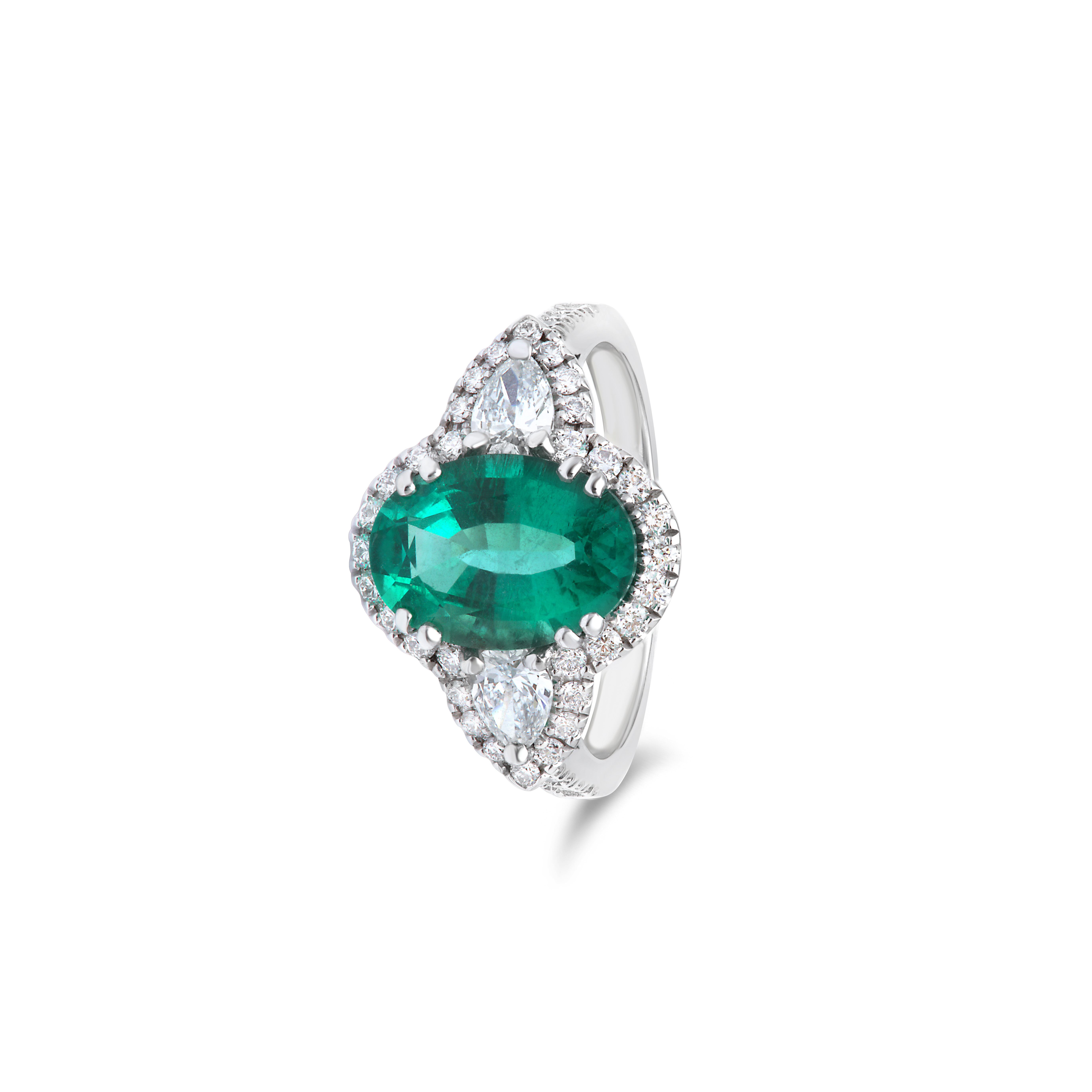 Bague Mariinsky en or blanc, émeraude, diamants taille poire et diamants