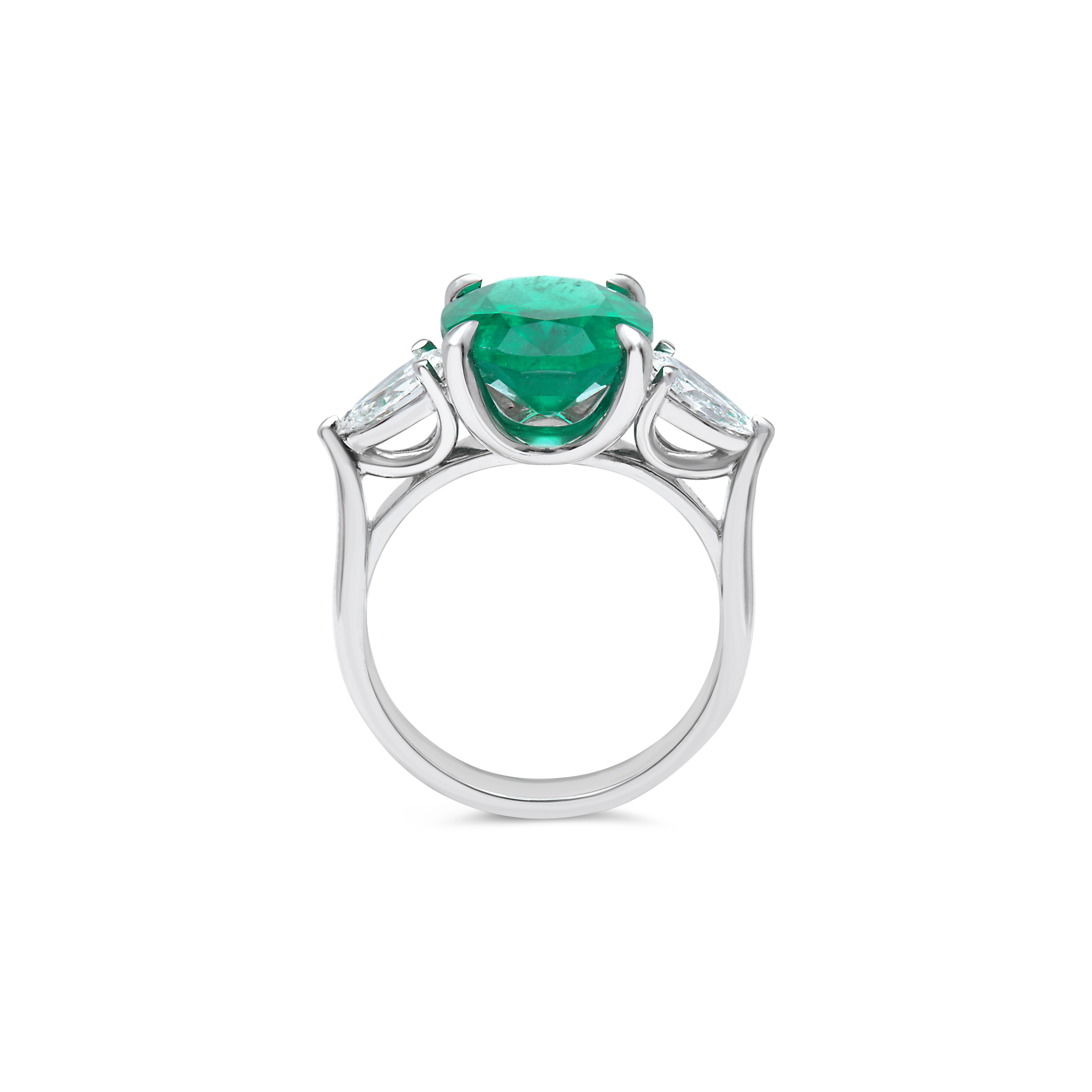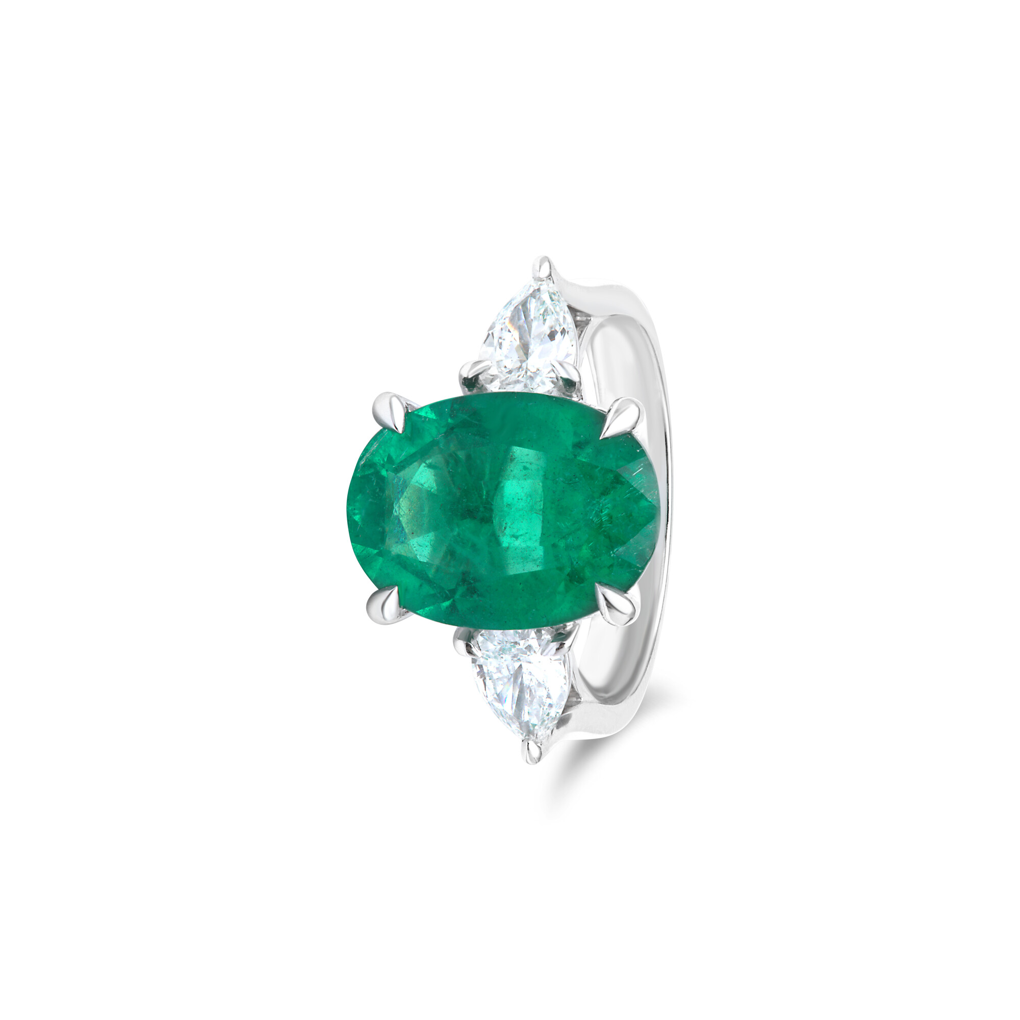 Bague Olympe en or blanc, émeraude taille ovale et diamants taille poire